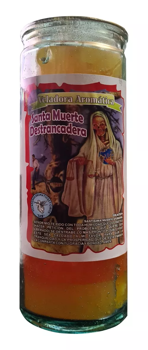 Una veladora esotérica Santa Muerte Destrancadera con aroma preparado es una vela ritual que se utiliza para eliminar obstáculos y abrir caminos en situaciones de estancamiento o bloqueo.